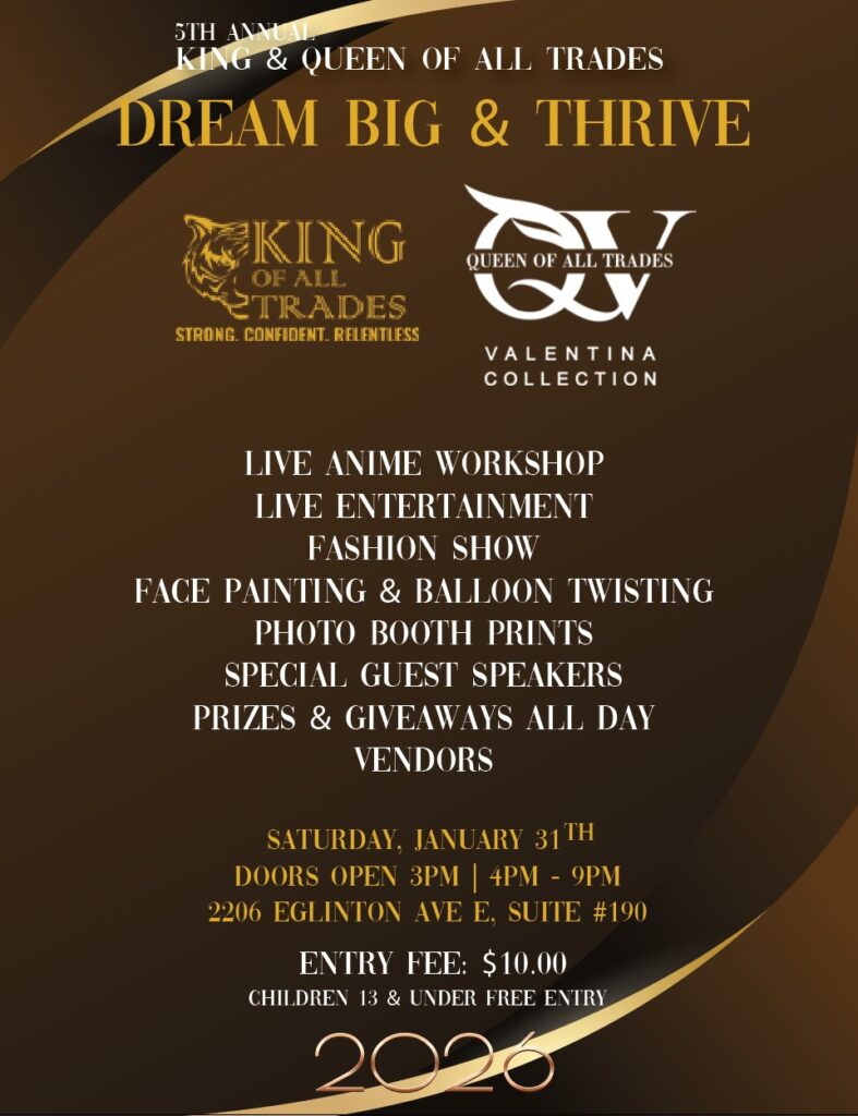 Join Us for Our 5th Annual King & Queen Of All Trades’ “Dream & Thrive” Opportunities.